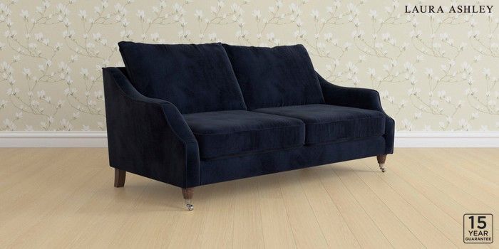 6.12.1 Buy Beverley by Laura Ashley 3 Seater Sofa Orla Midnight Navy Low Chrome Castor - Chestnut from the Next UK online shop Click here to use our accessible website