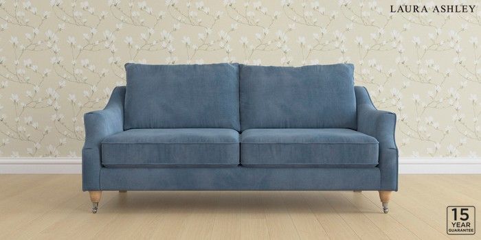 6.12.1 Buy Beverley by Laura Ashley 3 Seater Sofa Orla Seaspray Blue Low Chrome Castor - Light Oak from the Next UK online shop Click here to use our accessible website