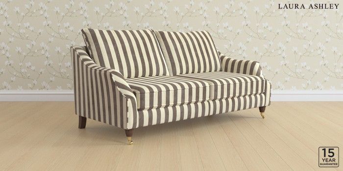 7.3.1 Buy Beverley by Laura Ashley 3 Seater Sofa Orla Stripe Dark Truffle Natural Low Brass Castor - Chestnut from the Next UK online shop Click here to use our accessible website