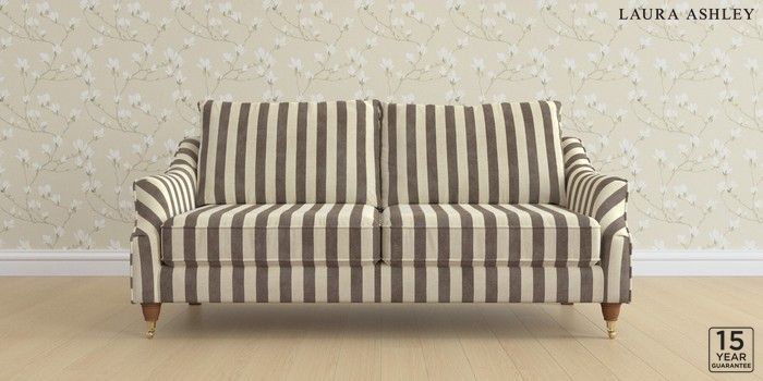 6.12.1 Buy Beverley by Laura Ashley 3 Seater Sofa Orla Stripe Dark Truffle Natural Low Brass Castor - Teak from the Next UK online shop Click here to use our accessible website