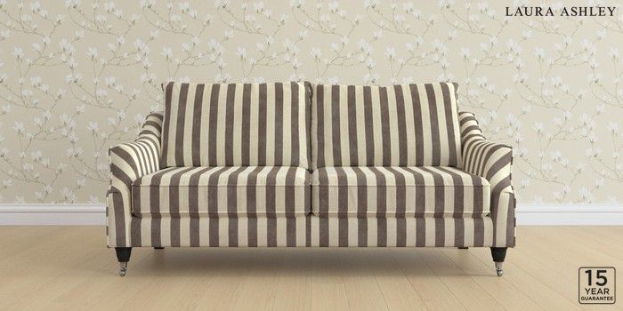 6.12.1 Buy Beverley by Laura Ashley 3 Seater Sofa Orla Stripe Dark Truffle Natural Low Chrome Castor - Black from the Next UK online shop Click here to use our accessible website