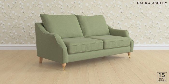 6.12.1 Buy Beverley by Laura Ashley 3 Seater Sofa Peyton Hedgerow Green Low Brass Castor - Light Oak from the Next UK online shop Click here to use our accessible website