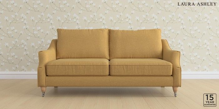 6.12.1 Buy Beverley by Laura Ashley 3 Seater Sofa Peyton Ochre Yellow Low Chrome Castor - Light Oak from the Next UK online shop Click here to use our accessible website