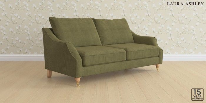 6.12.1 Buy Beverley by Laura Ashley 3 Seater Sofa Sinclair Cord Ivy Green Low Brass Castor - Light Oak from the Next UK online shop Click here to use our accessible website