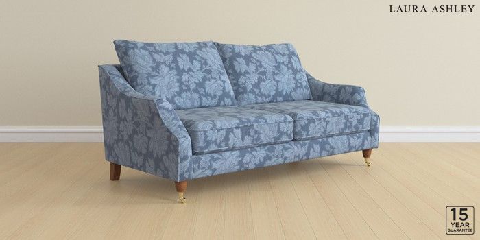 7.3.1 Buy Beverley by Laura Ashley 3 Seater Sofa Tamara Dusky Seaspray Blue Low Brass Castor - Teak from the Next UK online shop Click here to use our accessible website