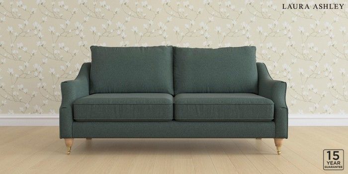 6.12.1 Buy Beverley by Laura Ashley 3 Seater Sofa Wooton Forest Green Low Brass Castor - Light Oak from the Next UK online shop Click here to use our accessible website