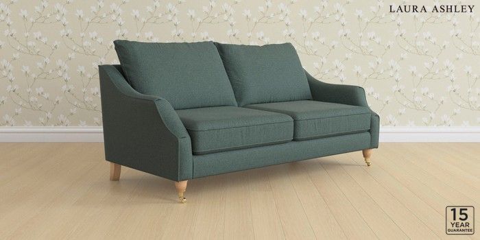 7.3.1 Buy Beverley by Laura Ashley 3 Seater Sofa Wooton Forest Green Low Brass Castor - Light Oak from the Next UK online shop Click here to use our accessible website