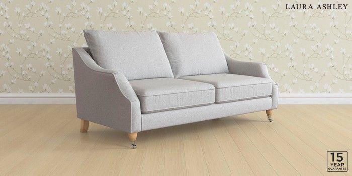 7.3.1 Buy Beverley by Laura Ashley 3 Seater Sofa Wooton Pale Steel Grey Low Chrome Castor - Light Oak from the Next UK online shop Click here to use our accessible website