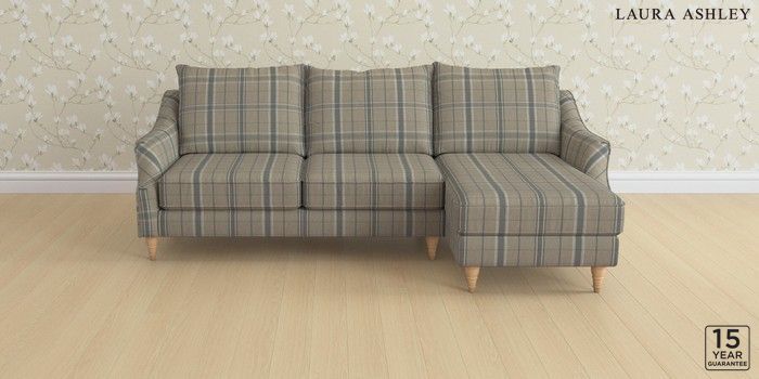 6.12.1 Buy Beverley by Laura Ashley Medium Sofa Chaise - Right Hand Longstowe Check French Grey Low Turned - Light Oak from the Next UK online shop Click here to use our accessible website