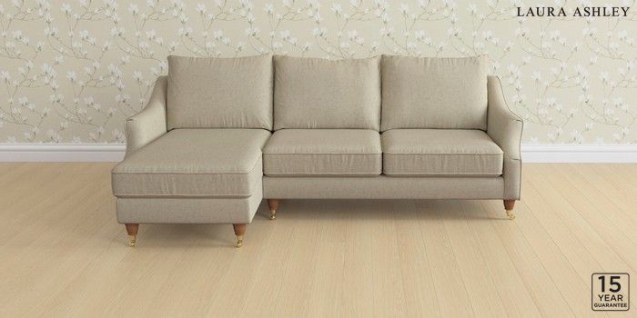 6.12.1 Buy Beverley by Laura Ashley Medium Sofa Chaise - Left Hand Bainton Natural Low Brass Castor - Teak from the Next UK online shop Click here to use our accessible website