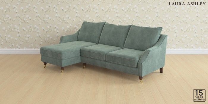6.12.1 Buy Beverley by Laura Ashley Medium Sofa Chaise - Left Hand Ailsworth Fern Green Low Brass Castor - Chestnut from the Next UK online shop Click here to use our accessible website