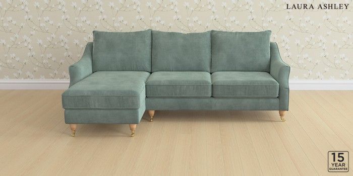 6.12.1 Buy Beverley by Laura Ashley Medium Sofa Chaise - Left Hand Ailsworth Fern Green Low Brass Castor - Light Oak from the Next UK online shop Click here to use our accessible website