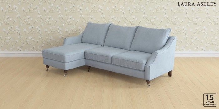 6.12.1 Buy Beverley by Laura Ashley Medium Sofa Chaise - Left Hand Ailsworth Newport Blue Low Chrome Castor - Chestnut from the Next UK online shop Click here to use our accessible website