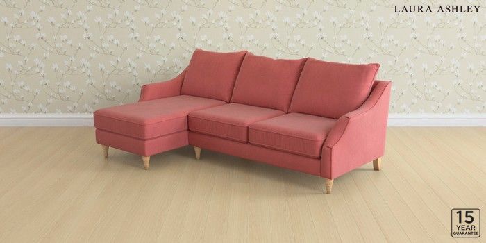6.12.1 Buy Beverley by Laura Ashley Medium Sofa Chaise - Left Hand Ailsworth Old Rose Pink Low Turned - Light Oak from the Next UK online shop Click here to use our accessible website