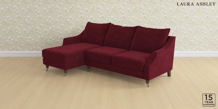 7.3.1 Buy Beverley by Laura Ashley Medium Sofa Chaise - Left Hand Alwyn Velvet Burgundy Red Low Chrome Castor - Chestnut from the Next UK online shop Click here to use our accessible website