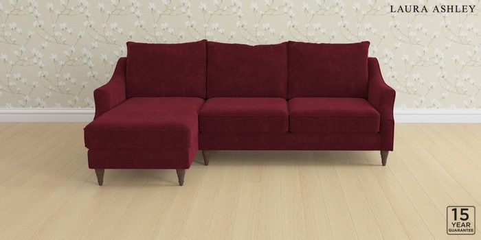 6.12.1 Buy Beverley by Laura Ashley Medium Sofa Chaise - Left Hand Alwyn Velvet Burgundy Red Low Turned - Chestnut from the Next UK online shop Click here to use our accessible website