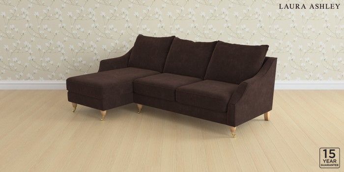 7.3.1 Buy Beverley by Laura Ashley Medium Sofa Chaise - Left Hand Alwyn Velvet Chocolate Brown Low Brass Castor - Light Oak from the Next UK online shop Click here to use our accessible website