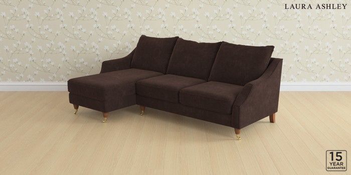 7.3.1 Buy Beverley by Laura Ashley Medium Sofa Chaise - Left Hand Alwyn Velvet Chocolate Brown Low Brass Castor - Teak from the Next UK online shop Click here to use our accessible website