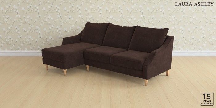 7.3.1 Buy Beverley by Laura Ashley Medium Sofa Chaise - Left Hand Alwyn Velvet Chocolate Brown Low Turned - Light Oak from the Next UK online shop Click here to use our accessible website