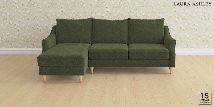 6.12.13 Buy Beverley by Laura Ashley Medium Sofa Chaise - Left Hand Alwyn Velvet Ivy Green Low Turned - Light Oak from the Next UK online shop Click here to use our accessible website