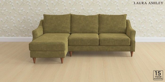 6.12.1 Buy Beverley by Laura Ashley Medium Sofa Chaise - Left Hand Alwyn Velvet Olive Green Low Turned - Teak from the Next UK online shop Click here to use our accessible website