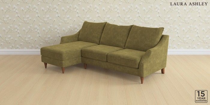 7.3.1 Buy Beverley by Laura Ashley Medium Sofa Chaise - Left Hand Alwyn Velvet Olive Green Low Turned - Teak from the Next UK online shop Click here to use our accessible website
