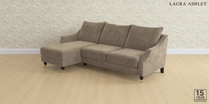 7.3.1 Buy Beverley by Laura Ashley Medium Sofa Chaise - Left Hand Alwyn Velvet Truffle Natural Low Brass Castor - Black from the Next UK online shop Click here to use our accessible website