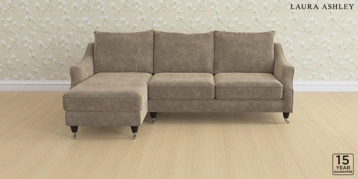 6.12.1 Buy Beverley by Laura Ashley Medium Sofa Chaise - Left Hand Alwyn Velvet Truffle Natural Low Chrome Castor - Black from the Next UK online shop Click here to use our accessible website