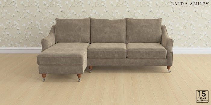 6.12.1 Buy Beverley by Laura Ashley Medium Sofa Chaise - Left Hand Alwyn Velvet Truffle Natural Low Chrome Castor - Teak from the Next UK online shop Click here to use our accessible website
