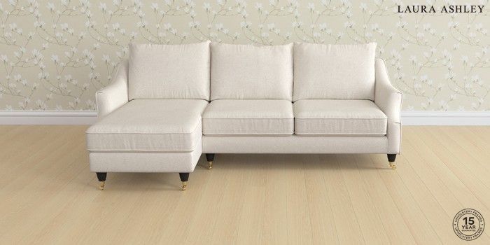 7.2.6 Buy Beverley by Laura Ashley Medium Sofa Chaise - Left Hand Anneliese Oyster Natural Low Brass Castor - Black from the Next UK online shop Click here to use our accessible website