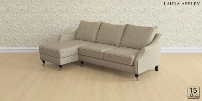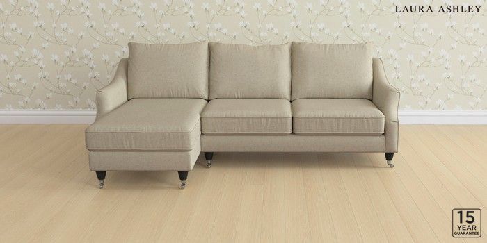 6.12.1 Buy Beverley by Laura Ashley Medium Sofa Chaise - Left Hand Bainton Natural Low Chrome Castor - Black from the Next UK online shop Click here to use our accessible website