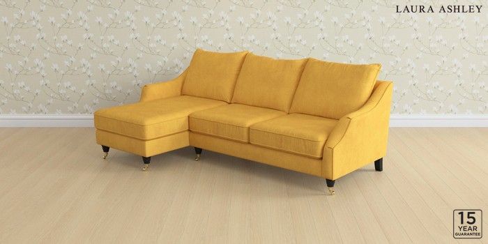 7.3.1 Buy Beverley by Laura Ashley Medium Sofa Chaise - Left Hand Bainton Ochre Yellow Low Brass Castor - Black from the Next UK online shop Click here to use our accessible website