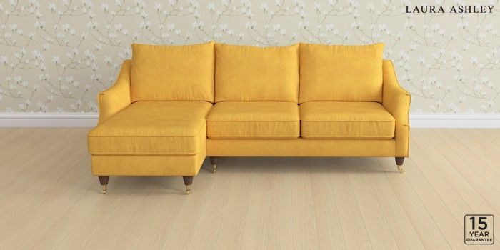 6.12.1 Buy Beverley by Laura Ashley Medium Sofa Chaise - Left Hand Bainton Ochre Yellow Low Brass Castor - Chestnut from the Next UK online shop Click here to use our accessible website