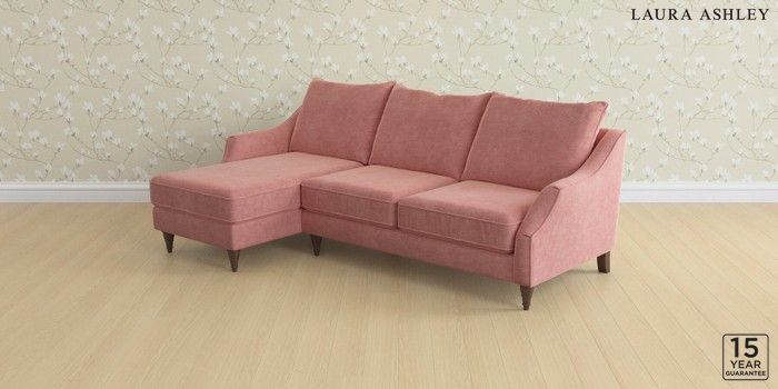 6.12.1 Buy Beverley by Laura Ashley Medium Sofa Chaise - Left Hand Bainton Old Rose Pink Low Turned - Chestnut from the Next UK online shop Click here to use our accessible website