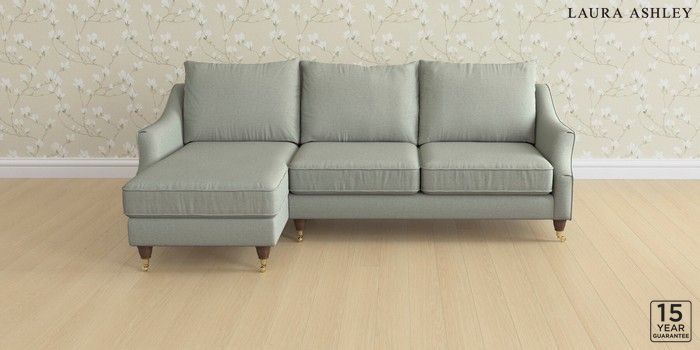 6.12.1 Buy Beverley by Laura Ashley Medium Sofa Chaise - Left Hand Bainton Sage Green Low Brass Castor - Chestnut from the Next UK online shop Click here to use our accessible website