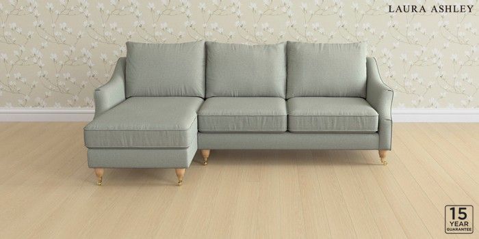 6.12.1 Buy Beverley by Laura Ashley Medium Sofa Chaise - Left Hand Bainton Sage Green Low Brass Castor - Light Oak from the Next UK online shop Click here to use our accessible website