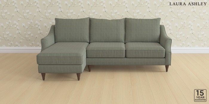 6.12.1 Buy Beverley by Laura Ashley Medium Sofa Chaise - Left Hand Birchgrove Check Olive Green Low Turned - Chestnut from the Next UK online shop Click here to use our accessible website