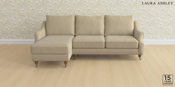 6.12.1 Buy Beverley by Laura Ashley Medium Sofa Chaise - Left Hand Chequers Hazelnut Natural Low Chrome Castor - Teak from the Next UK online shop Click here to use our accessible website