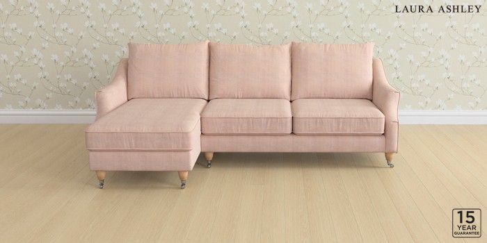 6.12.1 Buy Beverley by Laura Ashley Medium Sofa Chaise - Left Hand Edwin Chenille Blush Pink Low Chrome Castor - Light Oak from the Next UK online shop Click here to use our accessible website