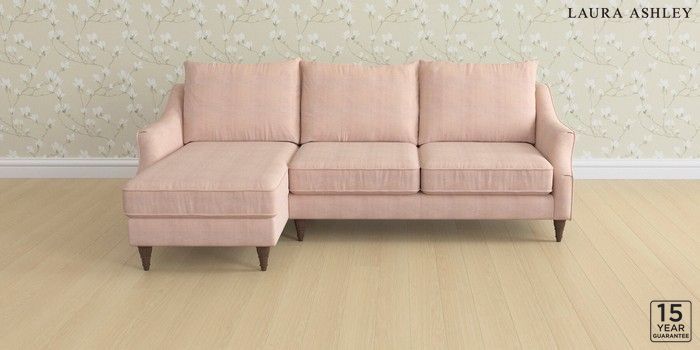6.12.1 Buy Beverley by Laura Ashley Medium Sofa Chaise - Left Hand Edwin Chenille Blush Pink Low Turned - Chestnut from the Next UK online shop Click here to use our accessible website