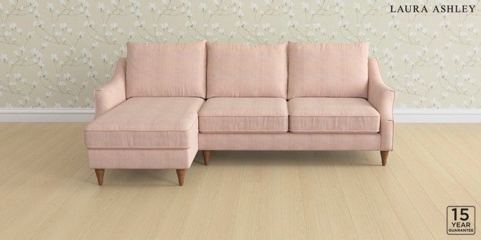 6.12.1 Buy Beverley by Laura Ashley Medium Sofa Chaise - Left Hand Edwin Chenille Blush Pink Low Turned - Teak from the Next UK online shop Click here to use our accessible website