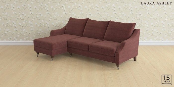 7.2.10 Buy Beverley by Laura Ashley Medium Sofa Chaise - Left Hand Edwin Chenille Burgundy Red Low Chrome Castor - Chestnut from the Next UK online shop Click here to use our accessible website