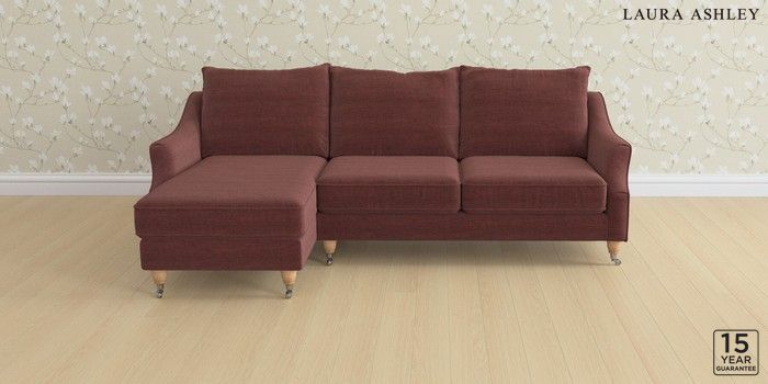 6.12.1 Buy Beverley by Laura Ashley Medium Sofa Chaise - Left Hand Edwin Chenille Burgundy Red Low Chrome Castor - Light Oak from the Next UK online shop Click here to use our accessible website