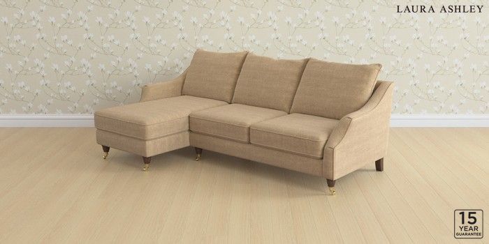 7.2.10 Buy Beverley by Laura Ashley Medium Sofa Chaise - Left Hand Edwin Chenille Gold Natural Low Brass Castor - Chestnut from the Next UK online shop Click here to use our accessible website