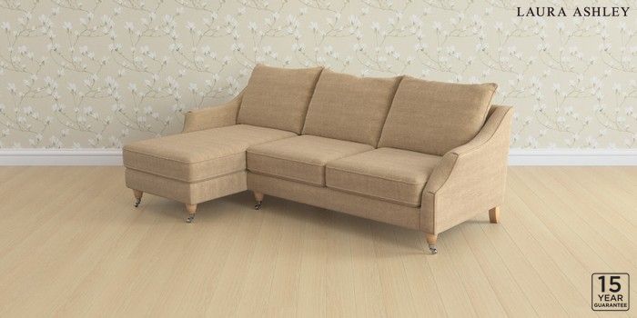 7.2.10 Buy Beverley by Laura Ashley Medium Sofa Chaise - Left Hand Edwin Chenille Gold Natural Low Chrome Castor - Light Oak from the Next UK online shop Click here to use our accessible website
