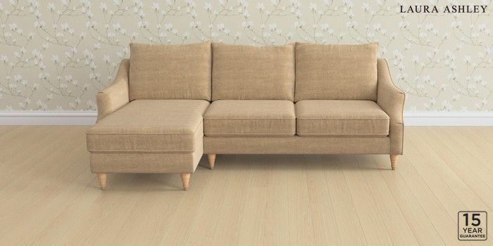 6.12.1 Buy Beverley by Laura Ashley Medium Sofa Chaise - Left Hand Edwin Chenille Gold Natural Low Turned - Light Oak from the Next UK online shop Click here to use our accessible website