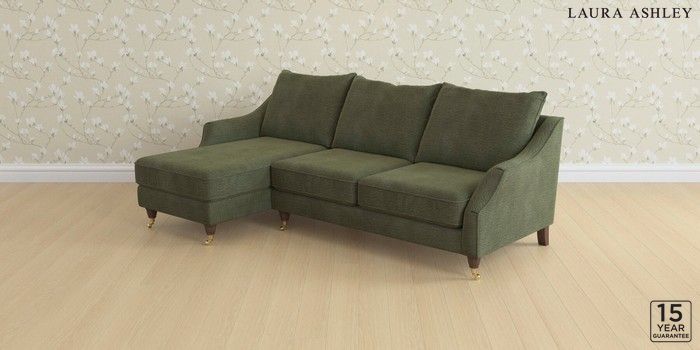 6.12.1 Buy Beverley by Laura Ashley Medium Sofa Chaise - Left Hand Edwin Chenille Hedgerow Green Low Brass Castor - Chestnut from the Next UK online shop Click here to use our accessible website