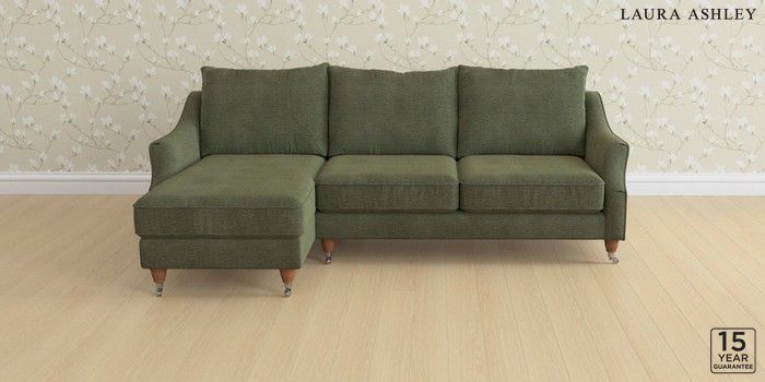 6.12.1 Buy Beverley by Laura Ashley Medium Sofa Chaise - Left Hand Edwin Chenille Hedgerow Green Low Chrome Castor - Teak from the Next UK online shop Click here to use our accessible website