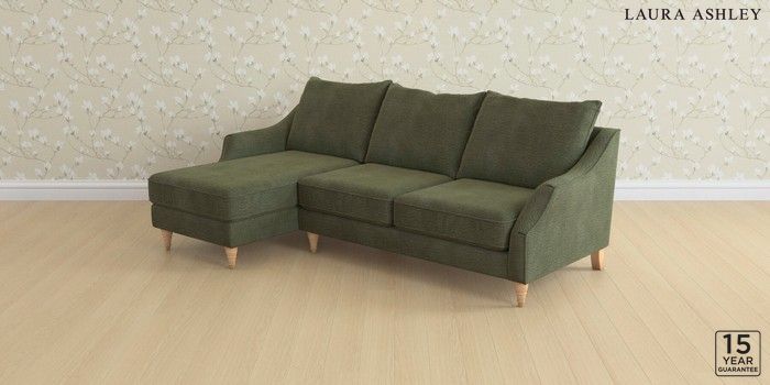 6.12.1 Buy Beverley by Laura Ashley Medium Sofa Chaise - Left Hand Edwin Chenille Hedgerow Green Low Turned - Light Oak from the Next UK online shop Click here to use our accessible website