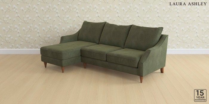 6.12.1 Buy Beverley by Laura Ashley Medium Sofa Chaise - Left Hand Edwin Chenille Hedgerow Green Low Turned - Teak from the Next UK online shop Click here to use our accessible website